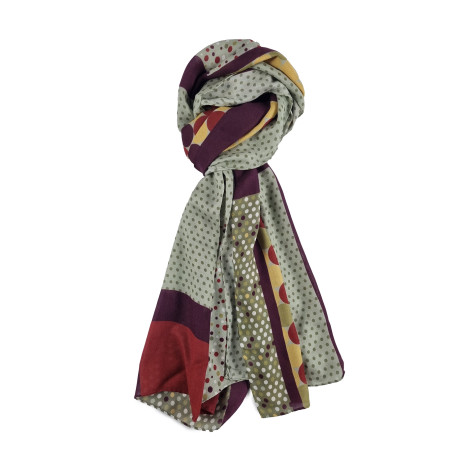 Don't forget to save your customization to be able to add to cartPrinted Cashmere/modal scarf multipattern - Bordeaux/Cream *Required step