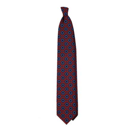 Non dimenticare di salvare la tua personalizzazione per poter riempire il carrelloCravatta 3 pieghe medaglioni madder seta - rosso *Campi richiesti