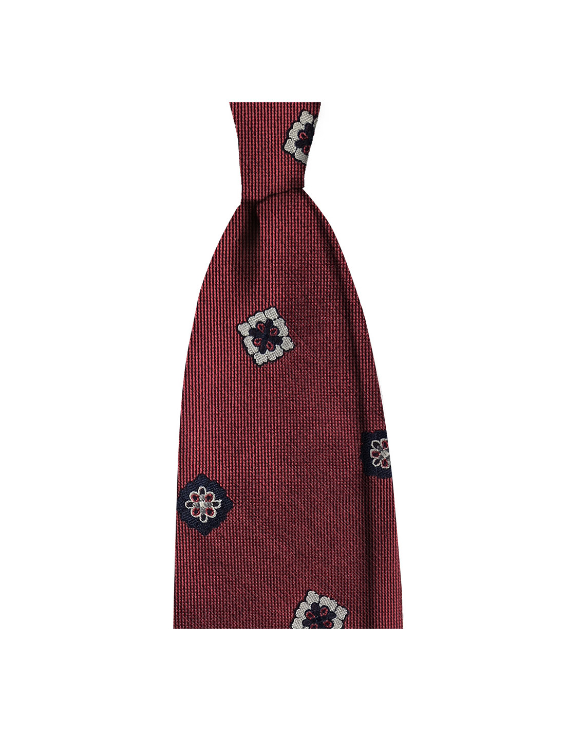 Non dimenticare di salvare la tua personalizzazione per poter riempire il carrelloCravatta 3 pieghe medaglioni seta jacquard - rosso *Campi richiesti